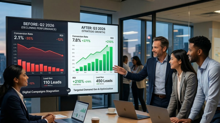 Result: Within three months, conversion rates rose 20%, and ad ROAS improved by 30%. The CFO stopped questioning the budget because the ROI spoke for itself.