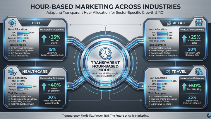 No matter your industry, one truth holds: flexibility + transparency = growth. Hour-based marketing adapts to your unique challenges, proves ROI in real time, and scales as you do.