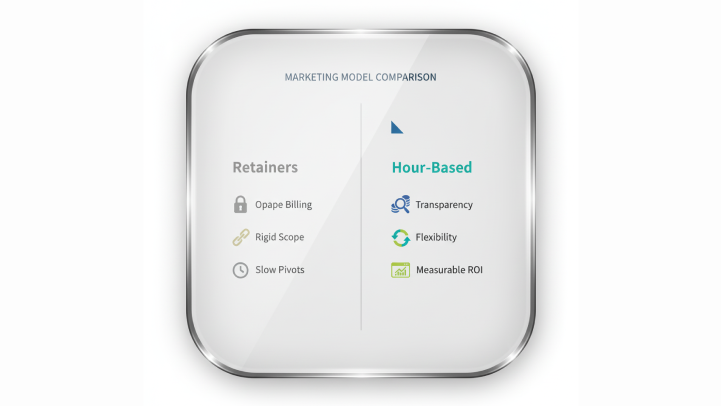 Hour-based marketing flips the model. Instead of paying for a package of “deliverables,” you buy time that you can direct as needed.