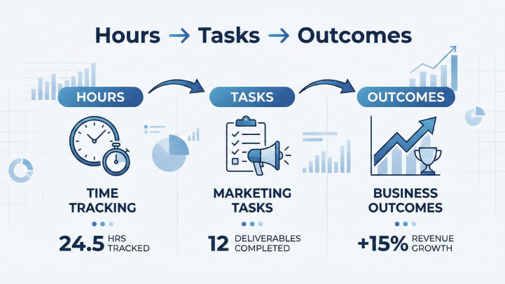 ROI shouldn’t be a mystery. Hour-based marketing makes it visible and defensible, turning budget reviews from stressful debates into growth conversations.